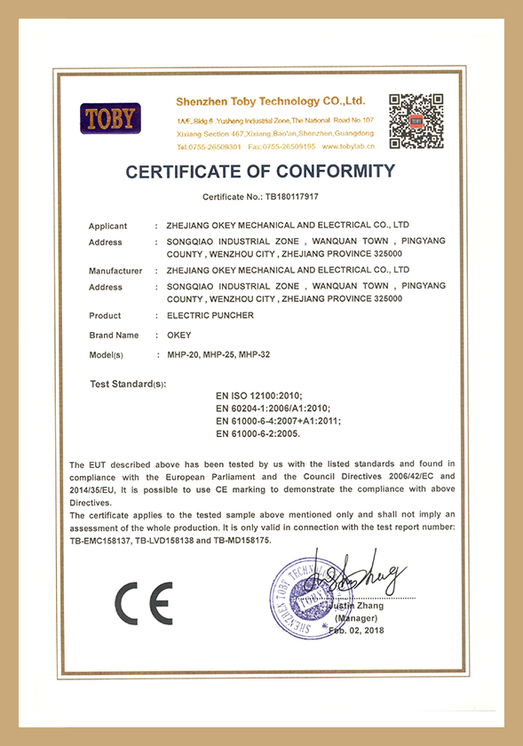 浙江歐凱機電有限公司,原瑞安市歐凱機電有限公司,成立于2003年,經過十幾年的不懈發展,2018年被評為省高新技術企業。本公司專業生產和研發便攜式電動液壓鋼筋切斷機、彎曲機、沖孔機、液壓泵以及充電式液壓工具、全...